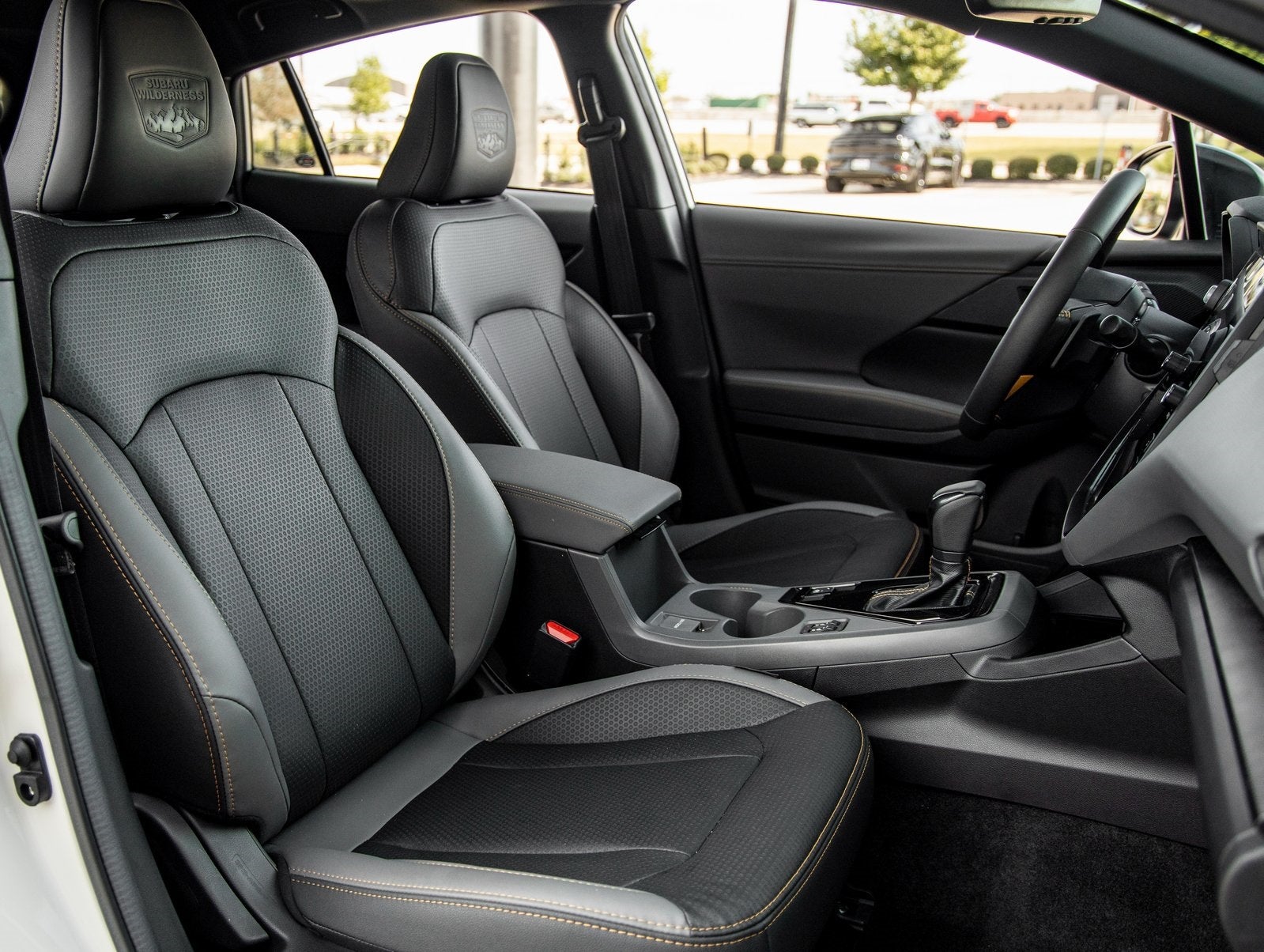 Step inside and the cabin offers a harmonious blend of utility and refinement. Appointed with water-repellent StarTex upholstery, copper-colored accent stitching, and brushed aluminum trim, the interior is both durable and stylish. Wilderness-specific all-weather floor mats and advanced tech features such as a high-resolution infotainment system ensure comfort and connectivity wherever the road leads.