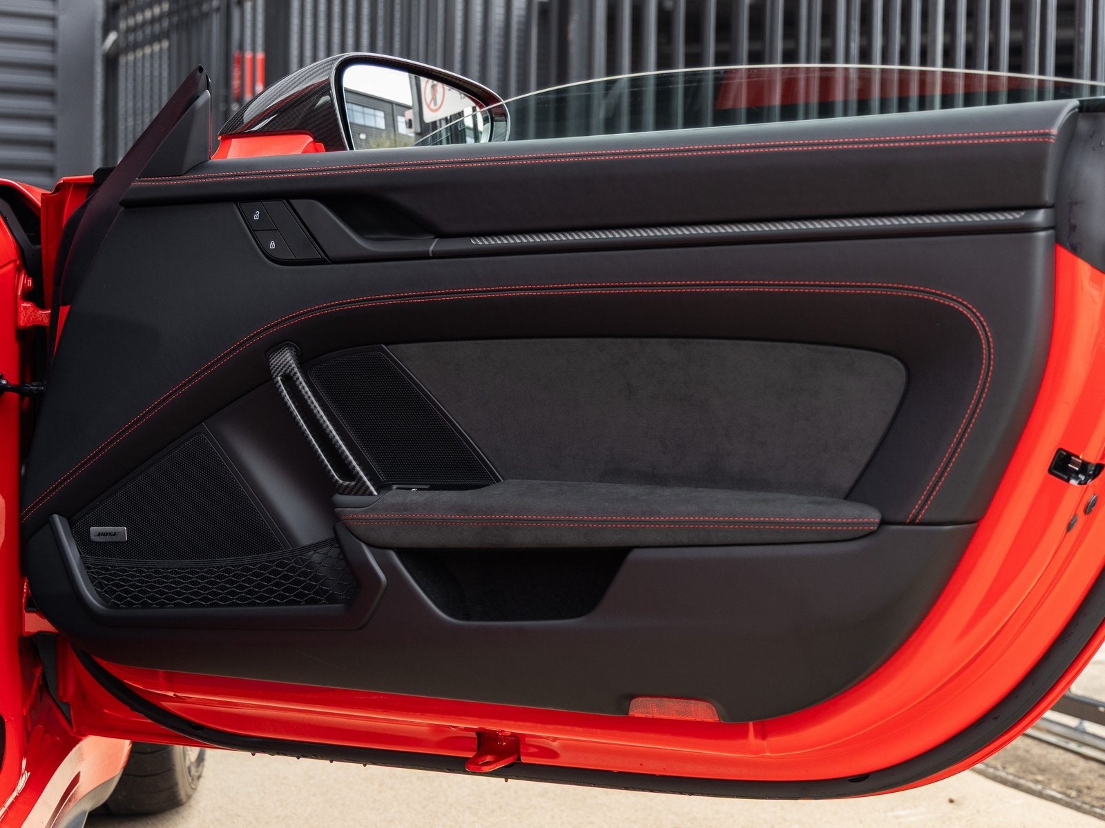 Step inside and the Leather/Race-Tex Interior in Black with Guards Red Stitching greets you, exuding an air of luxury that only Porsche can deliver. The Adaptive Sport Seats Plus (18-way) provide exceptional comfort and support, while Seat Belts in Guards Red and the Chrono Stopwatch Dial and Digital Tachometer in Guards Red punctuate the cabin with a sporty flair. The Center Console Lid in Race-Tex with PORSCHE Logo and BOSE Surround Sound System speak to a bespoke level of craftsmanship and modern refinement.