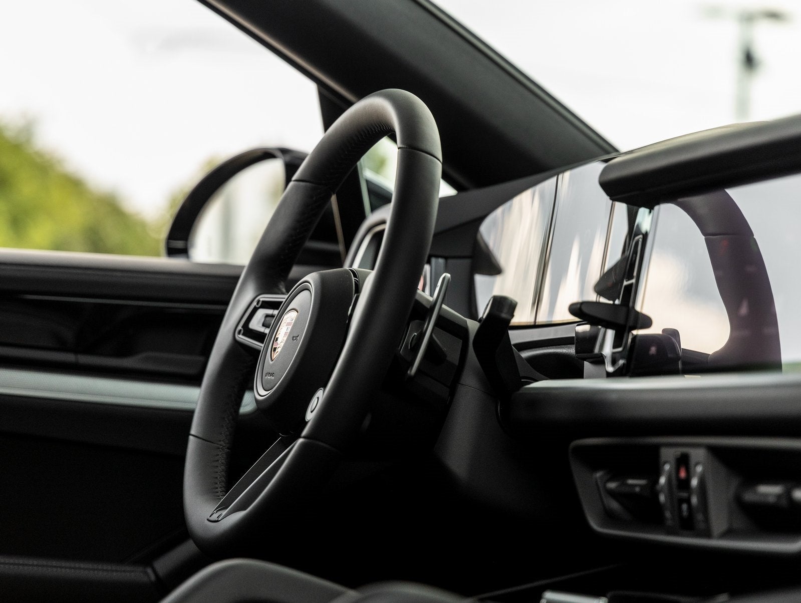 Step inside and the Leather Interior in Black greets you, exuding an air of luxury that only Porsche can deliver. Comfort is paramount with 14-way Power Seats with Memory, Ventilated Front Seats, Heated Rear Seats, and Rear Comfort Seats (2+1). The Heated GT Sport Steering Wheel, Porsche Crest on Headrests, and Under Door Puddle Light Projectors add distinctive touches of refinement.