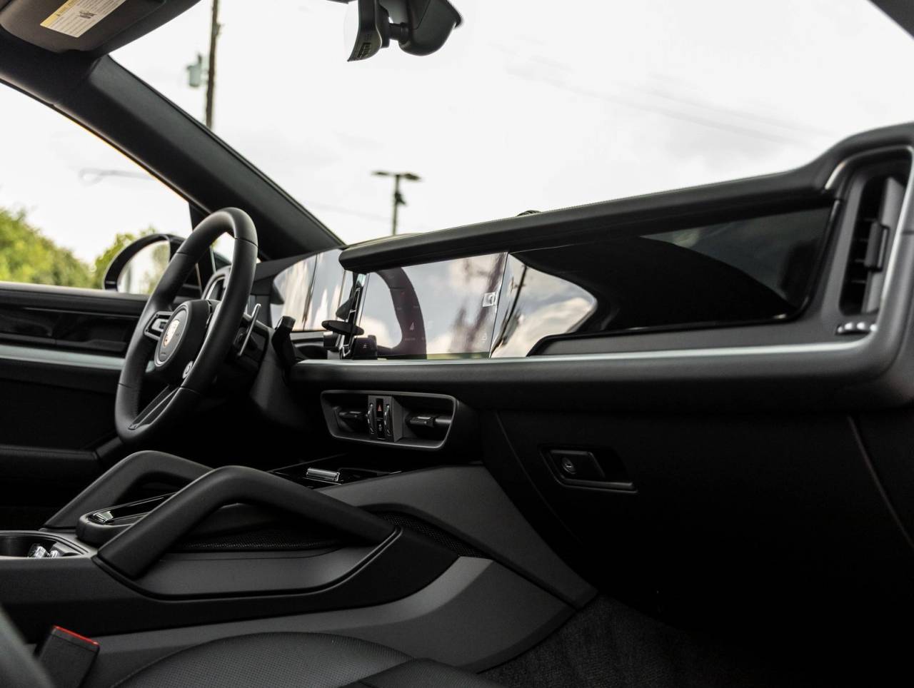 The Cayenne Coupe stands as a beacon of design and performance, its Chromite Black Metallic exterior not just a color, but a badge of honor that reflects Porsche's illustrious design heritage. Adorned with striking 21-inch RS Spyder Design Wheels in Satin Black, Sport Tailpipes in Dark Bronze, and Exclusive Design Taillights, it presents an athletic stance. The SportDesign Front Fascia adds to its commanding road presence, while details like the PORSCHE Logo and Model Designation in High Gloss Black underscore its bespoke style.