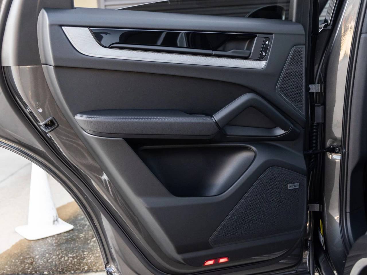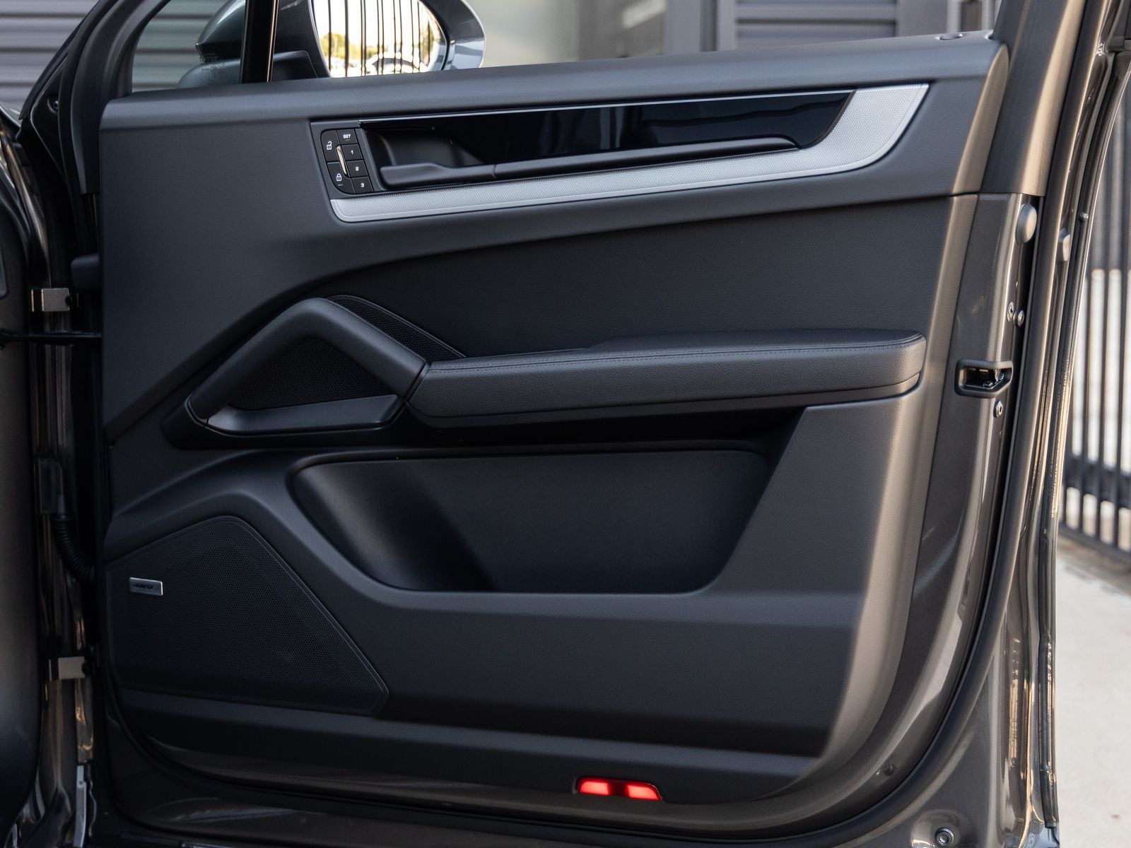 The Cayenne Coupe presents a striking and athletic silhouette, its Quartzite Grey Metallic exterior exuding subtle strength and elegance. Outfitted with bold 21 RS Spyder Design Wheels, Sport Tailpipes in Silver, SportDesign Package in High Gloss Black, and Exclusive Design Taillights, the exterior design is both dynamic and refined. The Exclusive Design Fuel Cap and Under Door Puddle Light Projectors further elevate the vehicle's bespoke character.