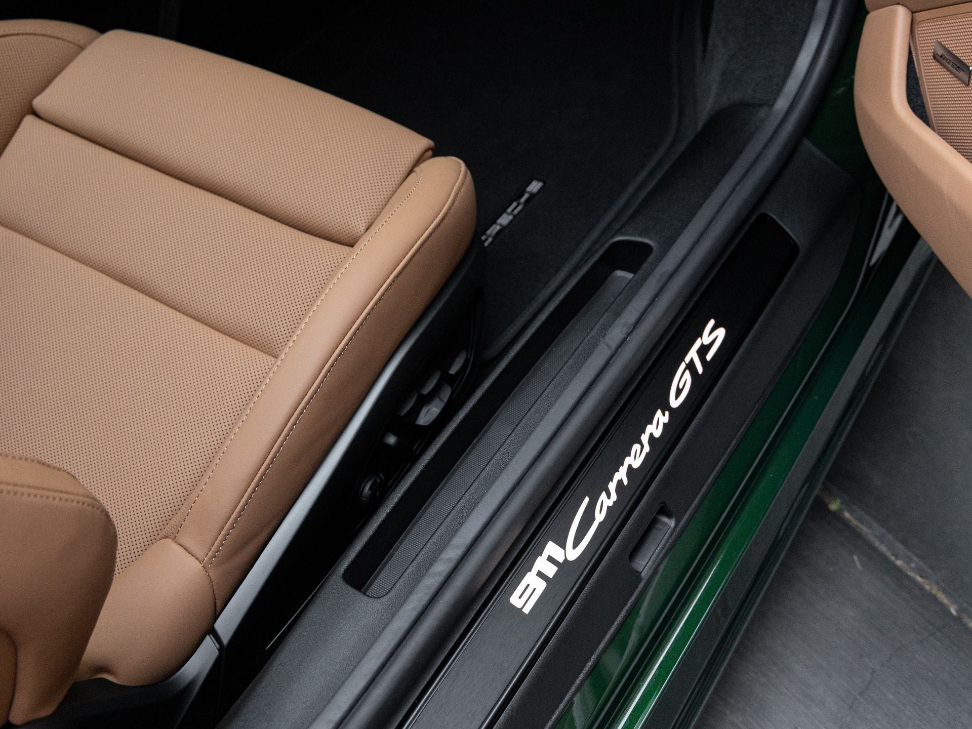 The 911 Carrera GTS stands as a modern interpretation of Porsches legendary sports car design, its Oak Green Metallic Neo exterior radiating timeless elegance and unmistakable presence. Sculpted lines and purposeful aerodynamics define its stance, further enhanced by striking 20/21-inch RS Spyder Wheels and HD-Matrix Design LED Headlights in Black. SportDesign Side Skirts and Exterior Mirror Bases finished in Exterior Color sharpen the vehicles athletic profile, while Brake Calipers in High Gloss Black add a subtle performance accent that underscores the GTS models dynamic character.